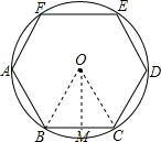 分析:首先根据题意画出图形,即可得△OBC是等边三角形,又由正六边形ABCDEF的周长为24,即可求得BC的长,继而求得△OBC的面积,则可求得该六边形的面积.