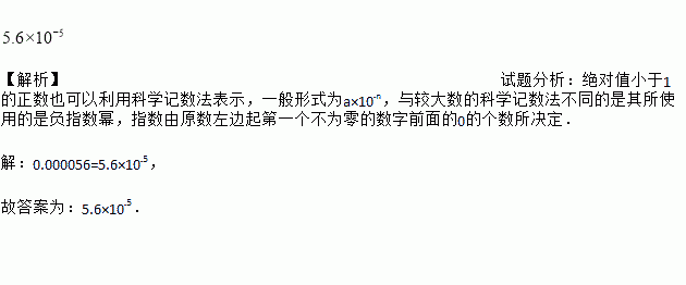 某种生物细胞的直径约为0.000056米,用科学记数法表示为__________米.