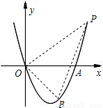 (3)对于(2)中的点B,在抛物线上是否存在点P,使∠POB=90°?若存在,求出点P的坐标,并求出△POB的面积;若不存在,请说明理由.