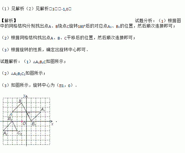 (3)若将△A2B2C2绕某一点旋转可以得到△A1B1C,请直接写出旋转中心的坐标.