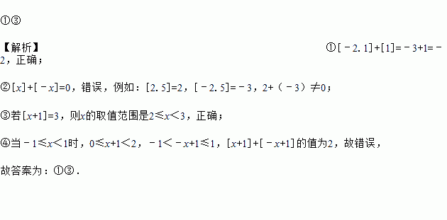 ③若[x+1]=3,则x的取值范围是2≤x<3;