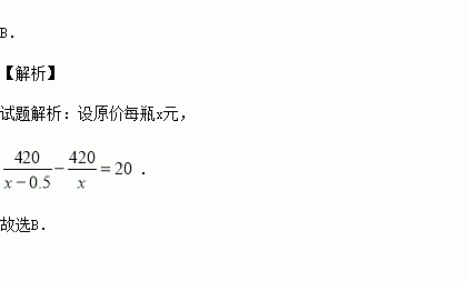 某学校用420元钱到商场去购买“84”消毒液,经过还价,每瓶便宜0.5元,结果比用原价多买了20瓶,求原价每瓶多少元?若设原价每瓶x元,则可列出方程为( )
