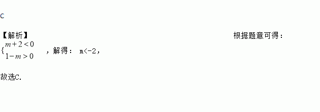 A. m>-2 B. m<1 C. m<-2 D. m>1