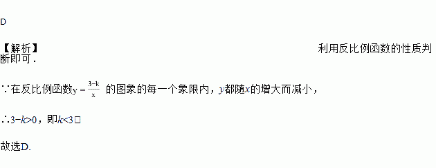 的图象的每一个象限内,y都随x的增大而减小,则k的取值范围是( )