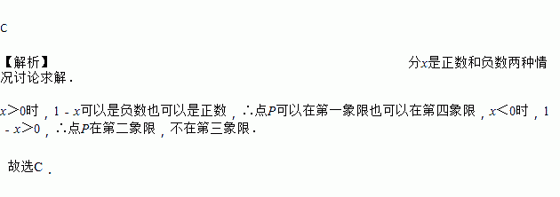 在平面直角坐标系中,点A(x,1-x)一定不在( )