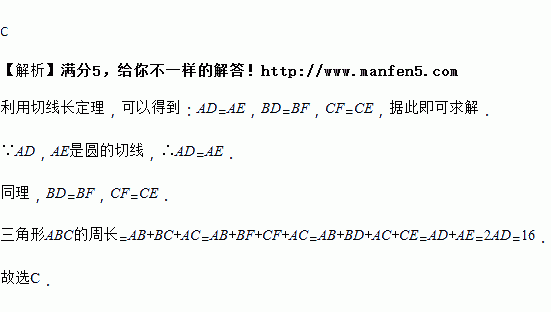 如图,,分别是的切线,,为切点,切于,交,于点,,若.则三角形的周长是( )