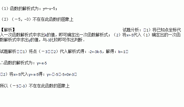 (1)求这个函数表达式;(2)判断(-5,-3)是否在此函数的图象上;