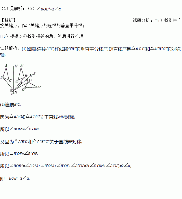 如图,△ABC和△A'B'C'关于直线MN对称,△A'B'C'和△A″B″C″关于直线EF对称.