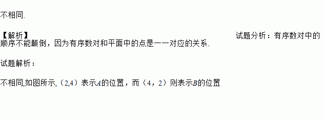 用有序数对表示物体位置时,(2,4)与(4,2)表示的位置相同吗?请结合图形说明.