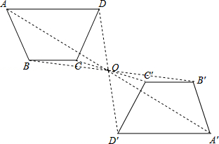 连接四边形的各顶点与O的线段并延长相同长度,找到对应点并顺次连接得到图形.
