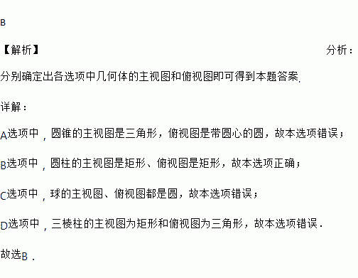 下列几何体中,主视图和俯视图都为矩形的是( )