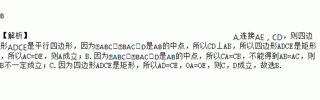 如图,△ABC中,∠ABC=∠BAC,D是AB的中点,EC∥AB,DE∥BC,AC与DE交于点O.下列结论中,不一定成立的是( )