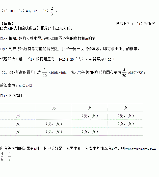 £¨2£©ÔÚÉÈÐÎͳ¼ÆÍ¼ÖУ¬mµÄֵΪ____£¬±íʾ¡°DµÈ¼¶¡±µÄÉÈÐεÄÔ²ÐĽÇΪ____¶È£»