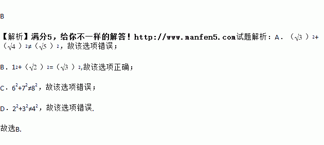 下列各组数据中的三个数作为三角形的边长,其中能构成直角三角形的是( )