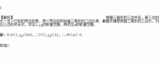 设三角形的三边长分别为2,9,1-2a,则a的取值范围是( )