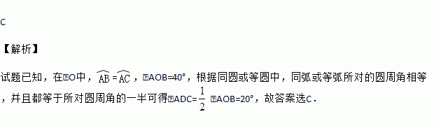 如图,在⊙O中,=,∠AOB=40°,则∠ADC的度数是( )