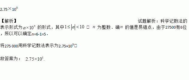 2017年端午小长假的第一天,永州市共接待旅客约275 000人次,请将275 000用科学记数法表示为_____.