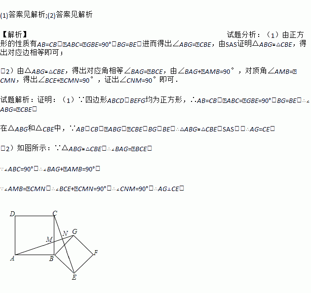 如图,四边形ABCD,四边形BEFG均为正方形,连接AG,CE.试说明: