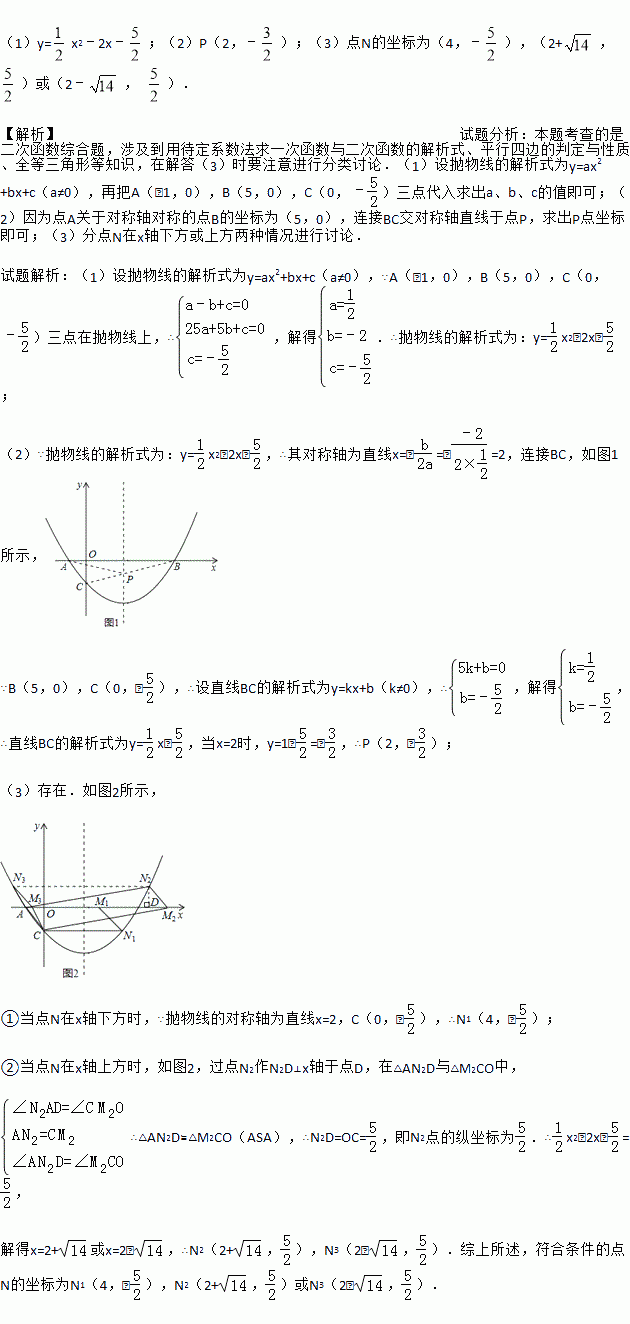(3)点M为x轴上一动点,在抛物线上是否存在一点N,使以A,C,M,N四点构成的四边形为平行四边形?若存在,求点N的坐标;若不存在,请说明理由.