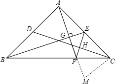 分析 根据已知条件得到∠ABC=45°,根据余角的性质得到∠EAF=∠ABE,由于∠ABE+∠EBF=∠ABC=45°,于是得到∠FAE+∠EBF=45°;故①正确;由∠ABC=∠EAG,∠AGB=∠AGE=90°,推出△ABG∽△AEG,根据相似三角形的性质得到$\frac{AG}{GE}$=$\frac{BG}{AG}$;故②正确;过点C作CM⊥AC交AF延长线于点M,易证△ABE≌△CAM,可得AE=CM,∠AEB=∠M,即可证明△EFC≌△MCF,可得∠FEC=∠M,即可证明△ABE≌△ACD,可得∠ABE=∠ACD,于是得到EF⊥CD,故③正确;根据等腰三角形的性质即可得到故CE≠CF④错误.