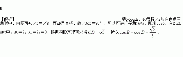 如图,⊙O是△ABC的外接圆,AD是⊙O的直径,连接CD,若⊙O的半径,AC=2,则cosB的值是( )