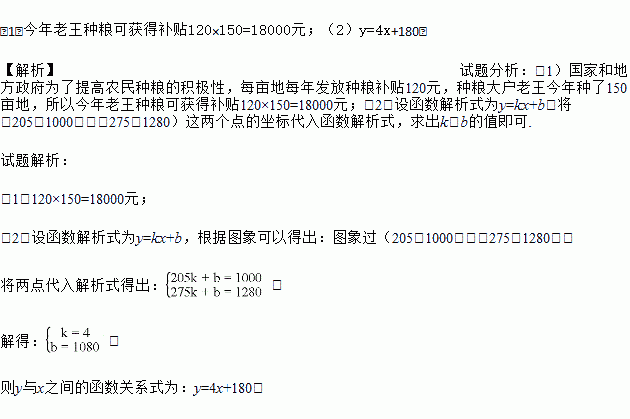 国家和地方政府为了提高农民种粮的积极性,每亩地每年发放种粮补贴120元,种粮大户老王今年种了150亩地,计划明年再承租50~150亩土地种粮以增加收入,考虑各种因素,预计明年每亩种粮成本y(元)与种粮面积x(亩)之间的函数关系如图所示: