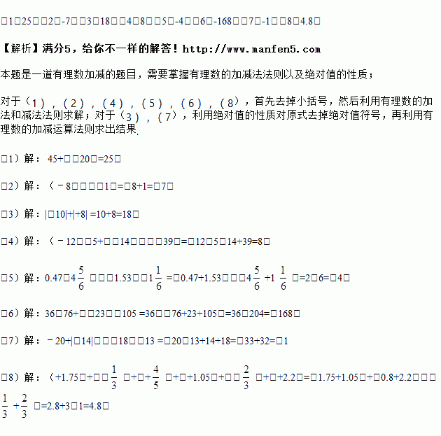 (7)﹣20+|﹣14|﹣(﹣18)﹣13;