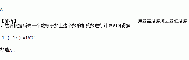某地区冬季最高气温为零下 1℃,最低零下 17℃,日均最高气温比最低气温高( )