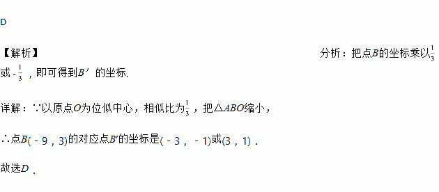 ,把△ABO缩小,则点B的对应点B′的坐标是( )