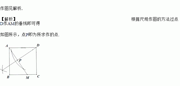 如图,已知在正方形ABCD中,M是BC边上一定点,连接AM,请用尺规作图法,在AM上求作一点P,使得△DPA∽△ABM(不写做法保留作图痕迹)