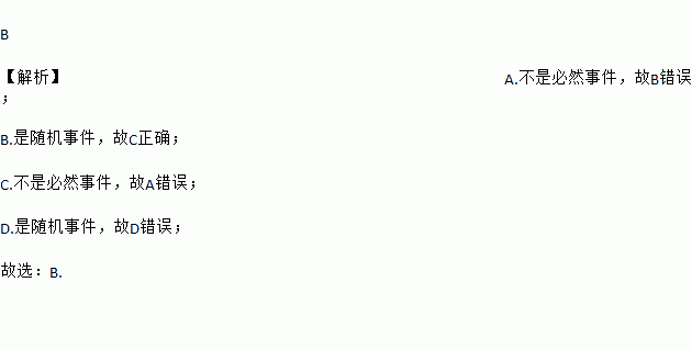 B 【解析】A.不是必然事件,故B错误; B.是随机事件,故C正确; C.不是必然事件,故A错误; D.是随机事件,故D错误; 故选:B.