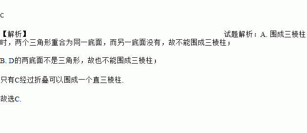 下列形状的四张纸板,能折叠成一个三棱柱的是( )