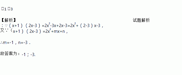 若(x+1)(2x-3)=2x2+mx+n,则m=________,n=________.