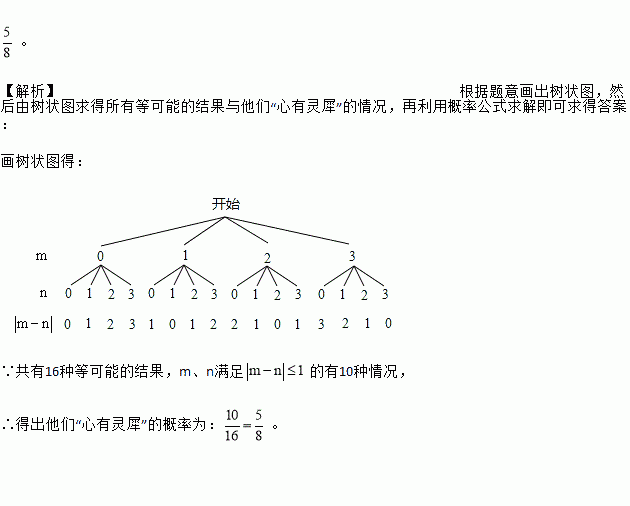 甲、乙两人玩猜数字游戏,游戏规则如下:有四个数字0、1、2、3,先由甲心中任选一个数字,记为m,再由乙猜甲刚才所选的数字,记为n。若m、n满足