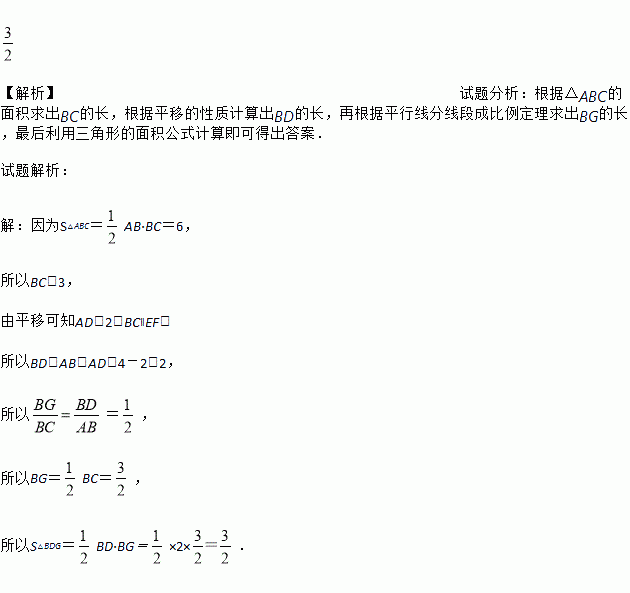 如图所示,将Rt△ABC沿直角边AB的方向向右平移2个单位得到△DEF,如果AB=4,∠ABC=90°,且△ABC的面积为6,试求图中阴影部分的面积.