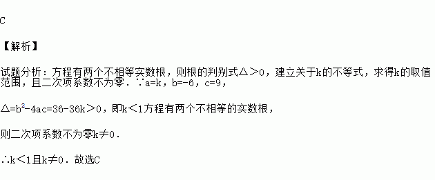 若关于x的方程kx2-6x+9=0 有两个不相等的实数根,则k的取值范围是( )