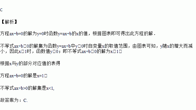 已知一次函数y=ax+b(a,b是常数,a≠0)中,x与y的部分对应值如下表:
