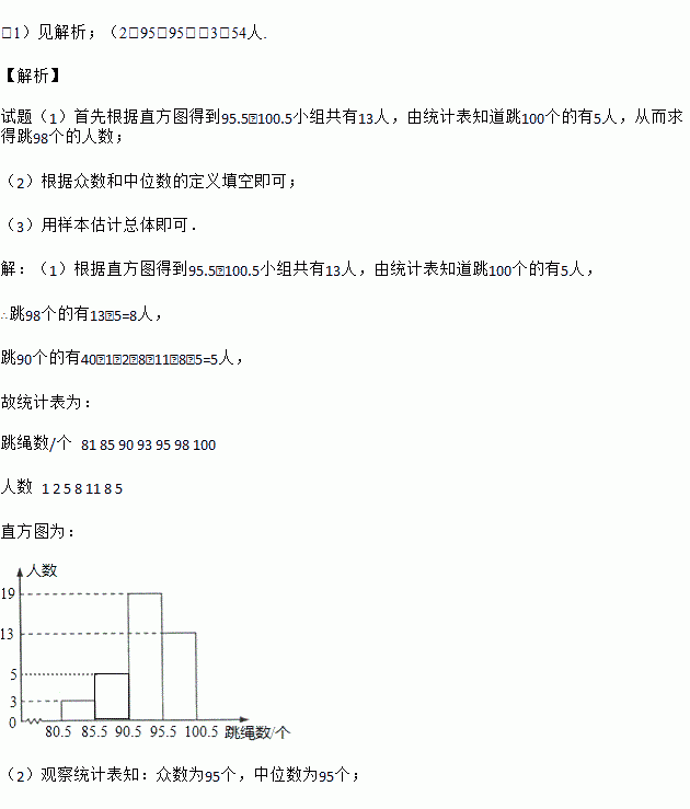 (2)这个班同学这次跳绳成绩的众数是 个,中位数是 个;
