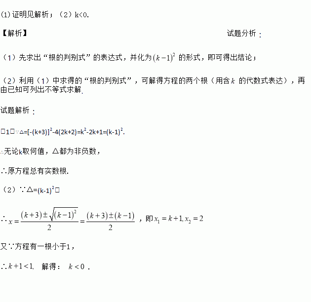 (2)若方程有一根小于1,求k的取值范围.
