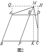 (2)过M作MK⊥BC于K,反向延长KM交AD于Q,则KQ⊥AD,在Rt△FMK中,FM•cos∠EFC=FK=x,