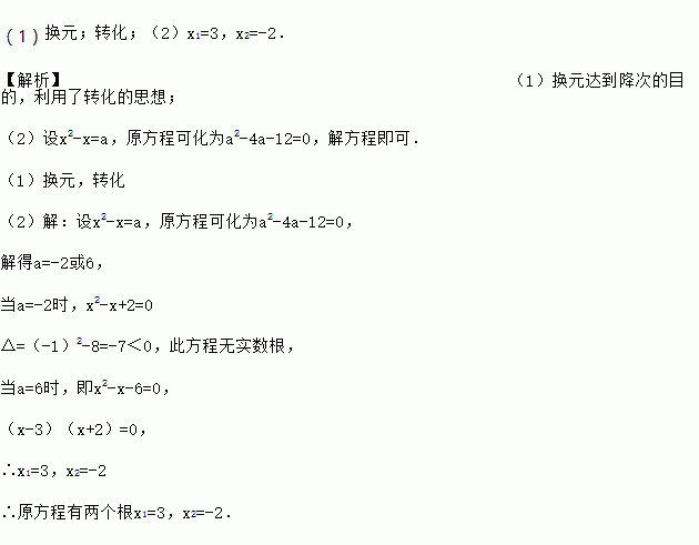 (2)解方程:( x2 -x )2 -4(x2 -x )-12=0.