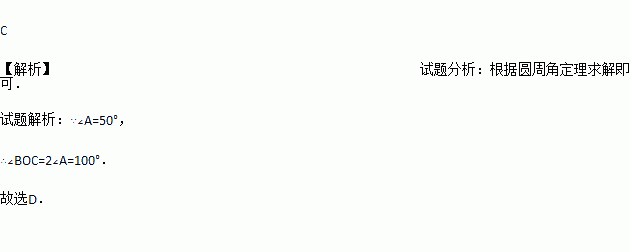 A. 40° B. 50° C. 80° D. 100°
