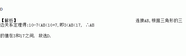 如图,为估计池塘岸边A、B两点的距离,小林在池塘的一侧选取一点O,测得OA=10米,OB=7米,则A、B间的距离不可能是( )