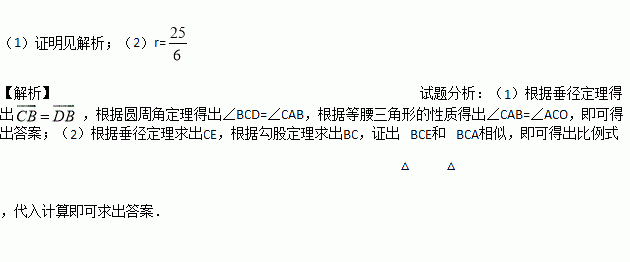 (2)若BE=3,CD=8,求⊙O的半径长.