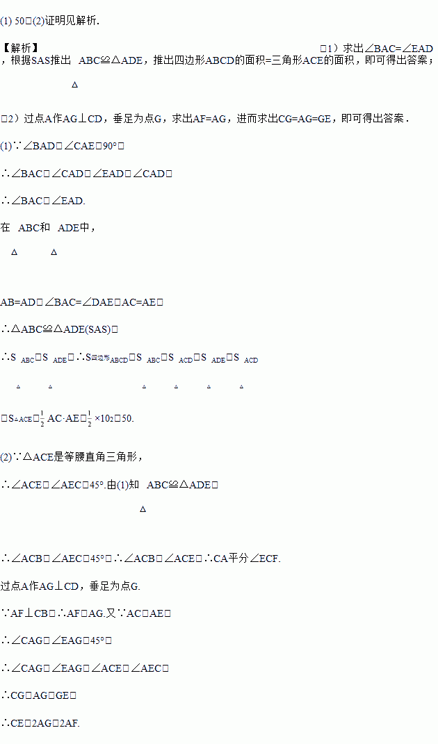如图,∠BAD=∠CAE=90°,AB=AD,AE=AC,点D在CE上,AF⊥CB,垂足为F.