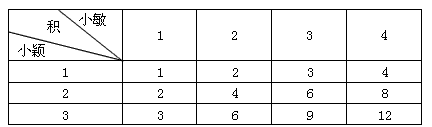 有一个不透明口袋,装有分别标有数字1,2,3,4的4个小球(小球除数字不同外,其余都相同),另有3张背面完全一样、正面分别写有数字1,2,3的卡片,小敏从口袋中任意摸出一个小球,小颖从这3张背面朝上的卡片中任意摸出一张,然后计算小球和卡片上的两个数的积。