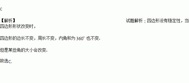四边形没有稳定性,当四边形形状改变时,发生变化的是( ).