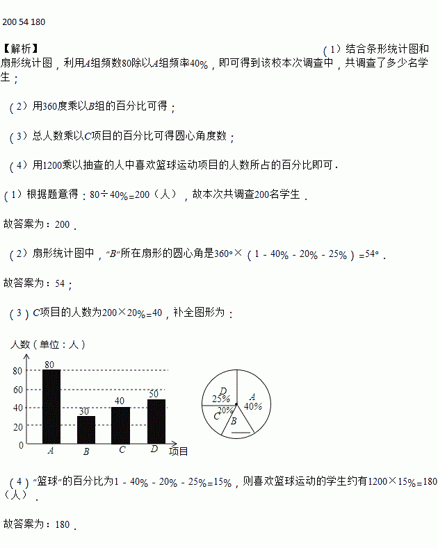 (4)若该中学有1200名学生,喜欢篮球运动的学生约有________名.
