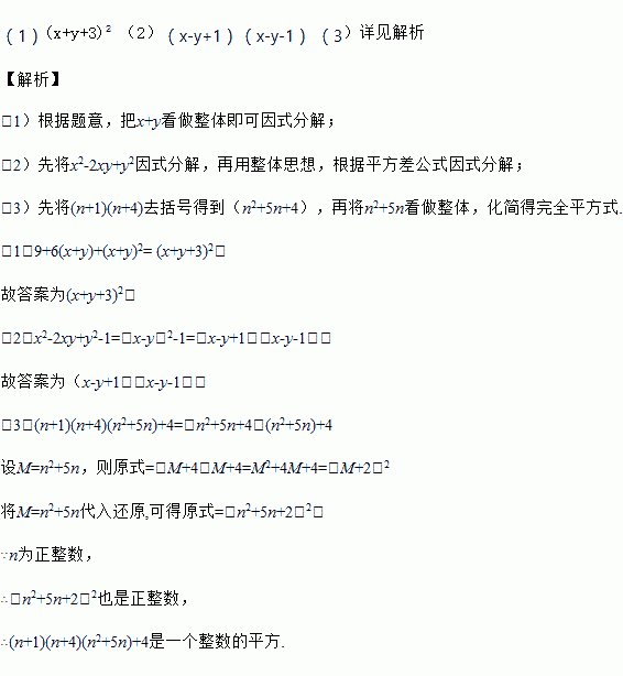 (1)分解因式:9+6(x+y)+(x+y)2=____________________.