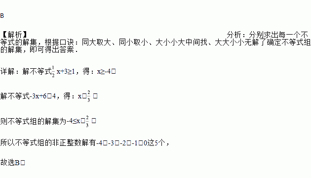 不等式组的非正整数解的个数是( )